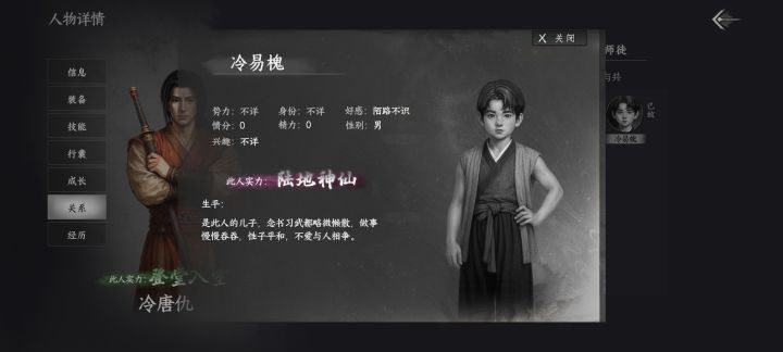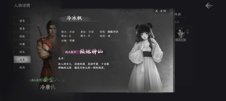 3.查看人物关系,里面的人基本都是陆地神仙。。。感觉是个bug吧。