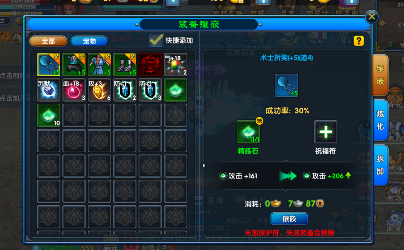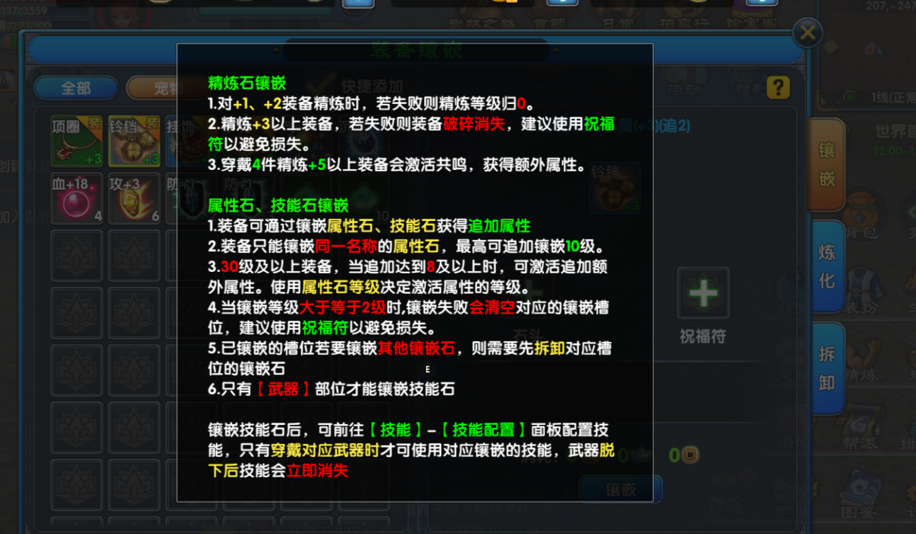 失败风险:精炼 + 1、+2 失败,等级归零但装备不损坏,这个阶段可大胆尝试。而精炼 + 3 及以上失败,装备将破碎消失,所以从 + 3 开始就得小心谨慎,合理使用祝福符来降低损失风险。