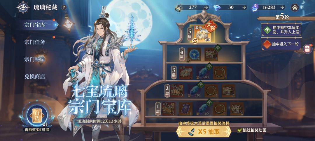 40抽,抽完前两轮,来到第三轮,第三轮变成五层的形式