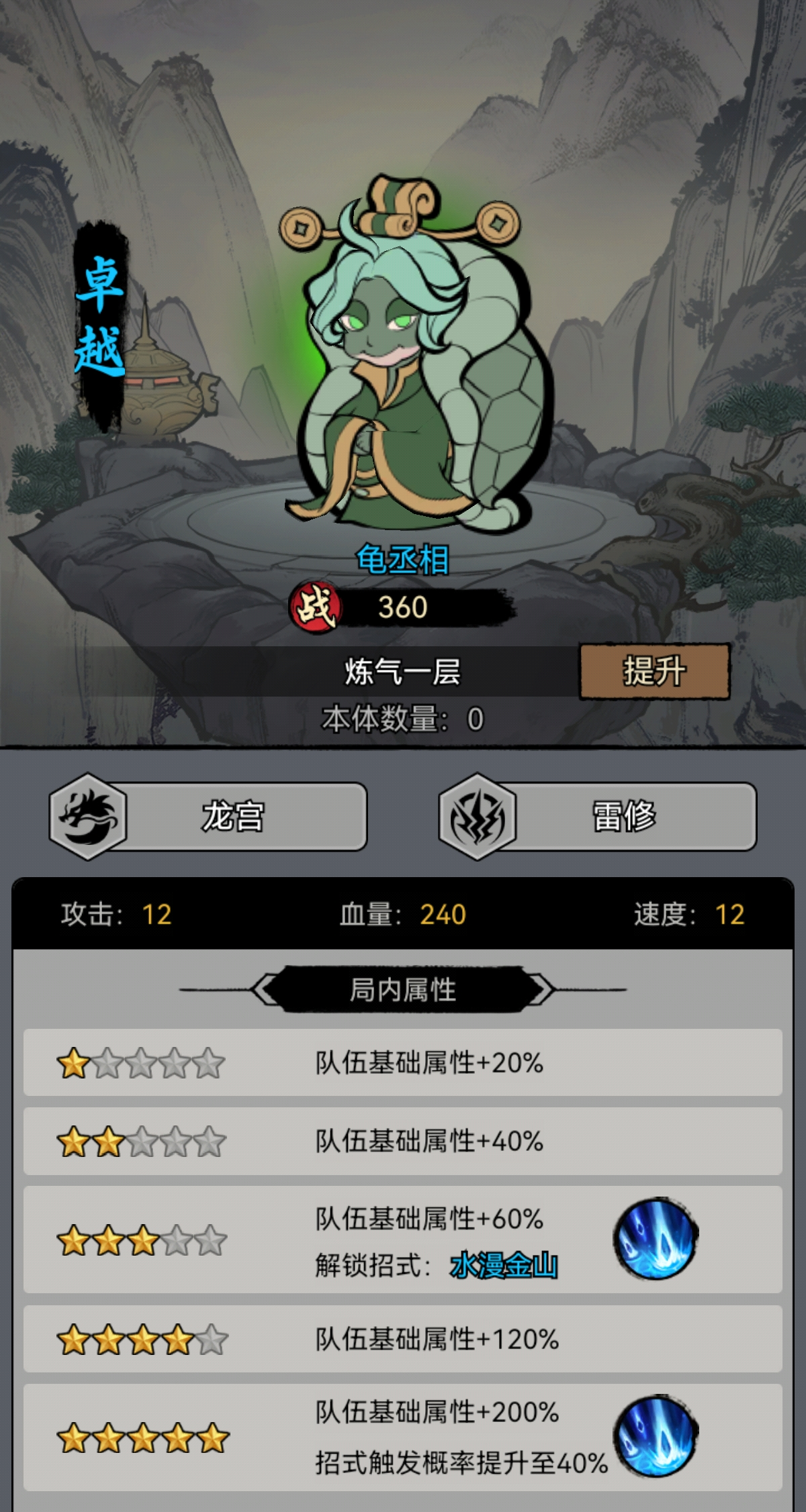 (ps:通过战局内的养成,弟子累积升至三星才能够解锁技能释放;且技能伤害倍率也会随局外弟子境界的提升而提高哦~)