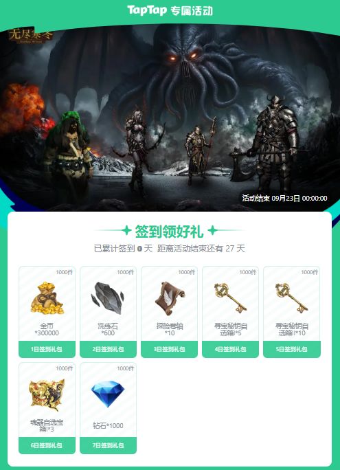 1、在活动期间点击签到礼包进入签到页,再点击下方的“签到”即可参与;