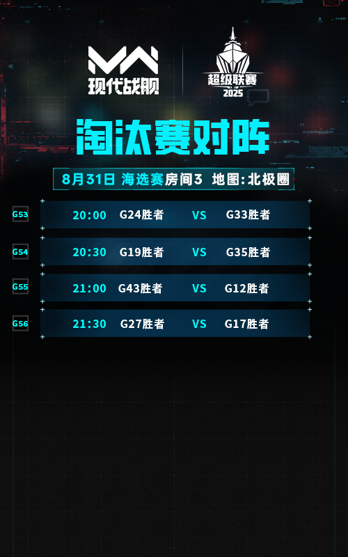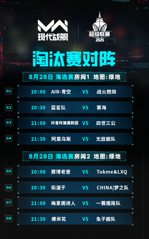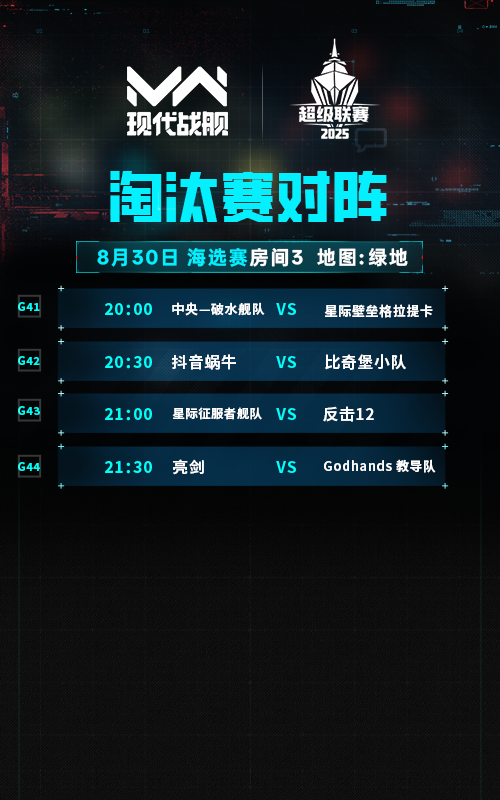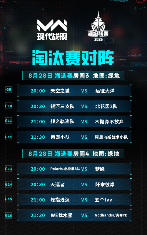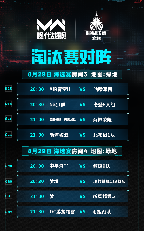【现代战舰】2025超级联赛 海选淘汰赛对阵公布