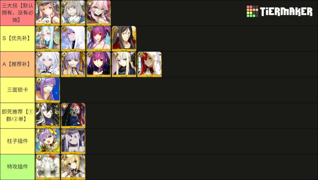 榜单以一宝为主,同时考虑实战中开辅助宝具提供增益