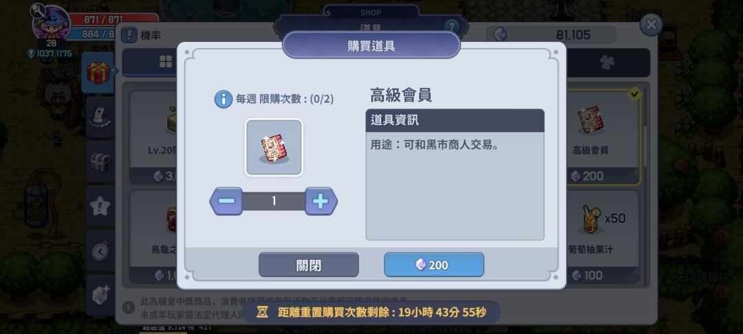 需注意,角色购买高级会员后,两类中介商初始各仅能上架 5 个物品,如果是账号下每名角色都想上架物品,则每名角色都需要购买高级会员。