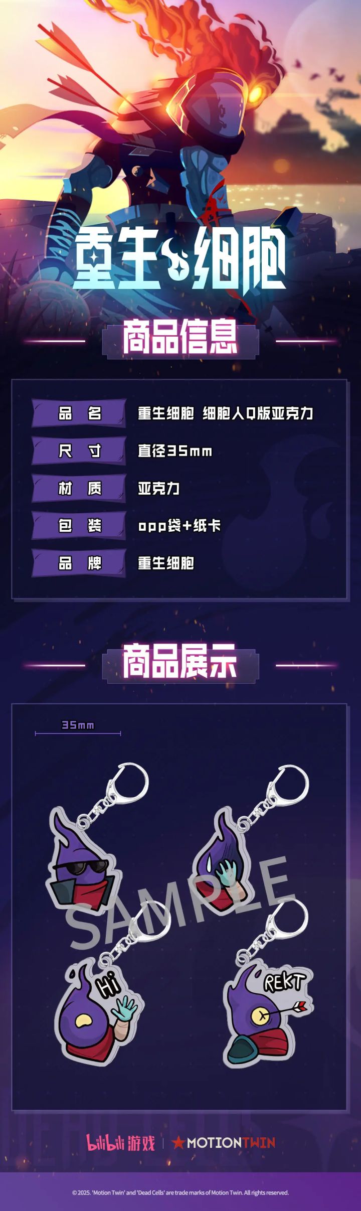 目前上架的有【细胞人Q版钥匙扣挂件】和【细胞人角色立牌(镭射材质)】两款周边。