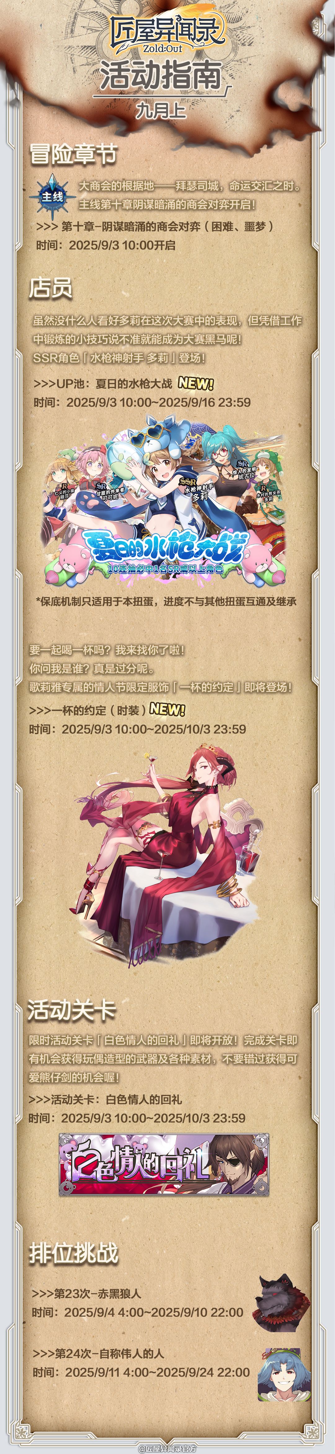 与此同时,主线第十章开启了更高难度的挑战,更有活动关卡「白色情人的回礼」带来了限定武器,让我们一起期待本期的全新内容吧!