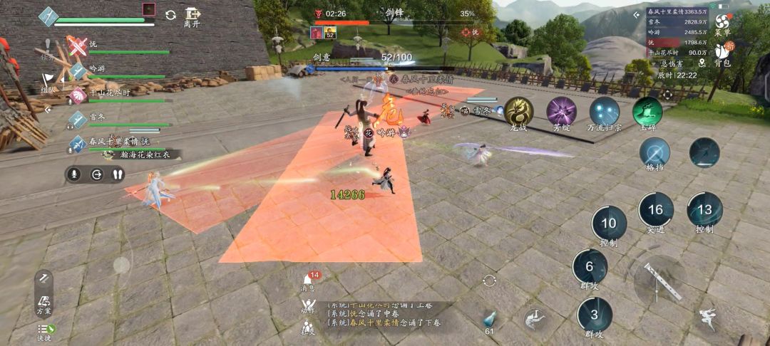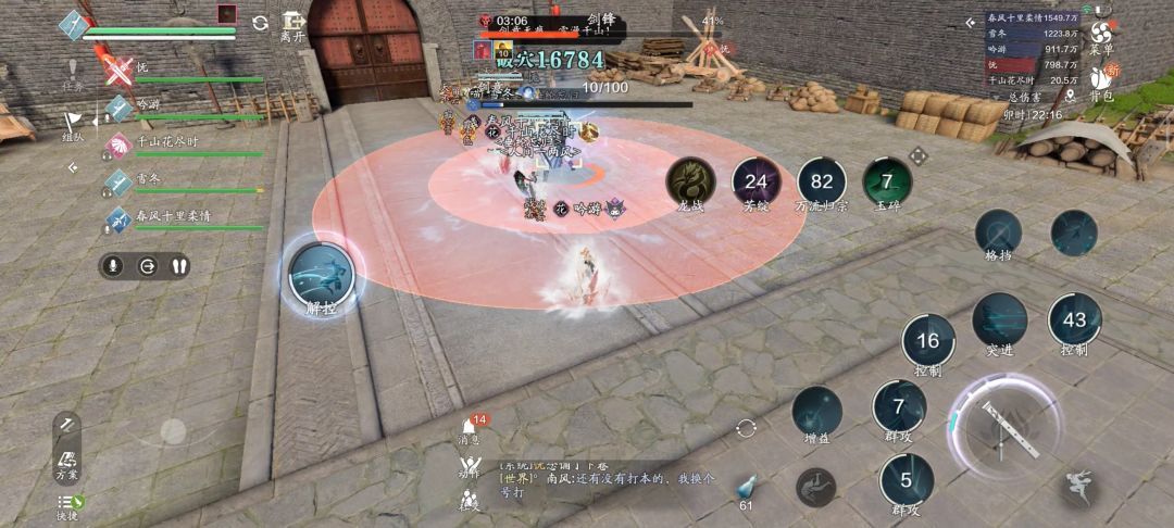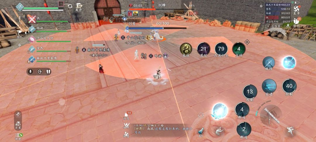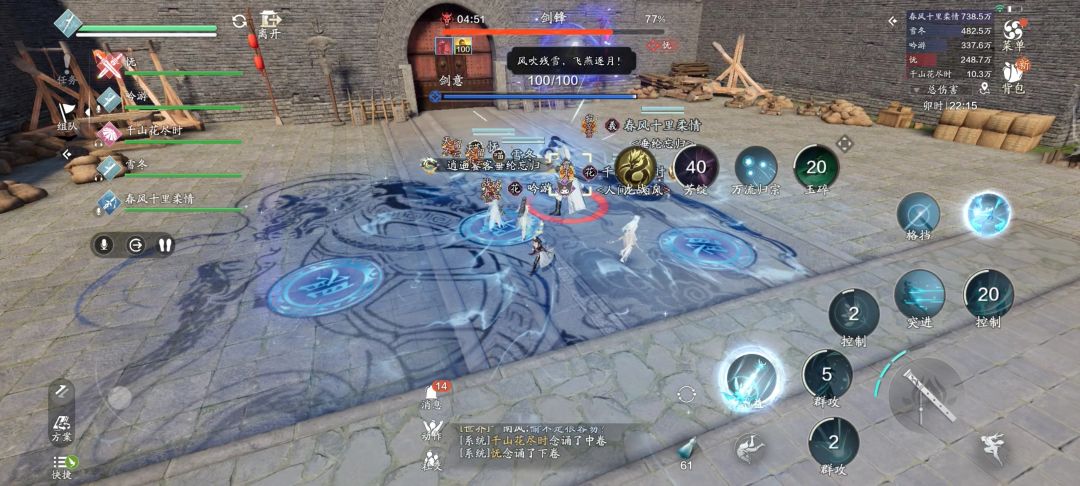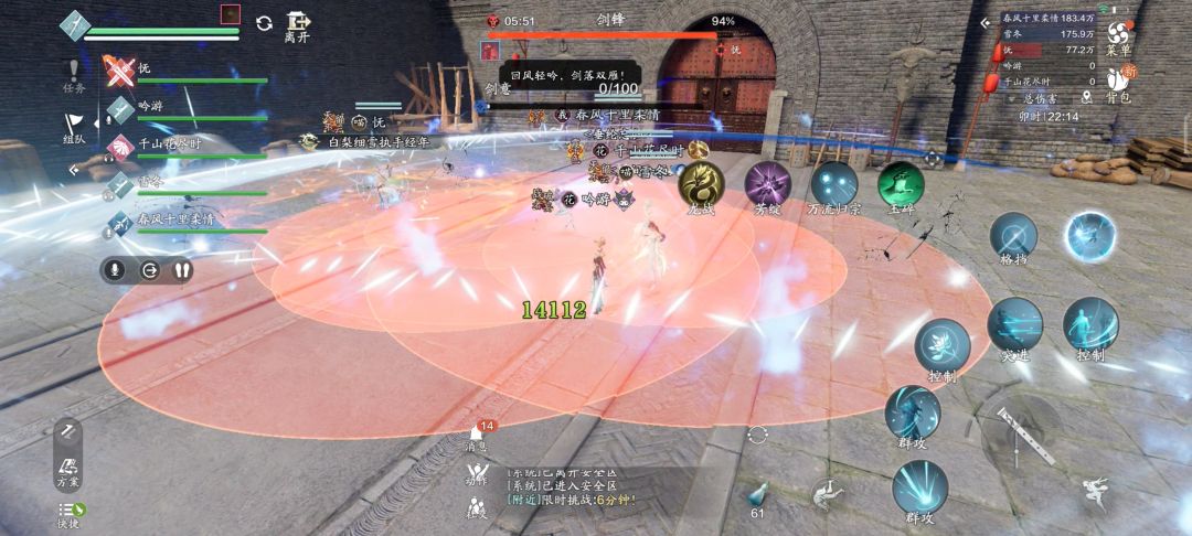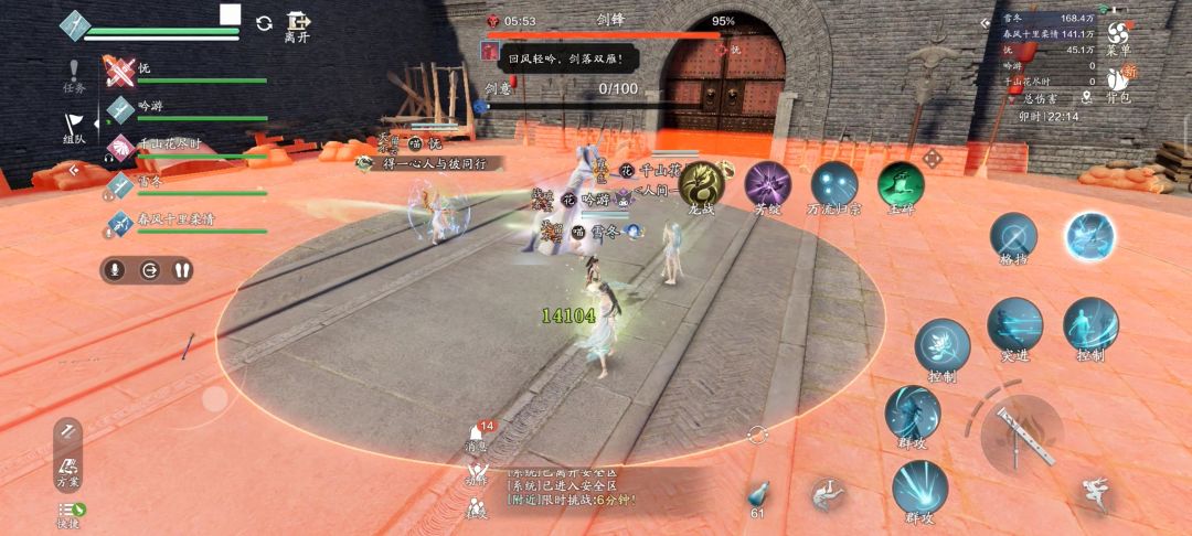 剑锋以自身为圆形释放圆形技能,对技能范围内的少侠造成冰冻效果。随后向自身周围挥出4道扇型剑气,连续施放2次,剑气每命中1名少侠获得10点剑意。各位少侠如果被圆形技能冰冻,立刻使用“解控技”解控,随后躲避两次剑气打击。