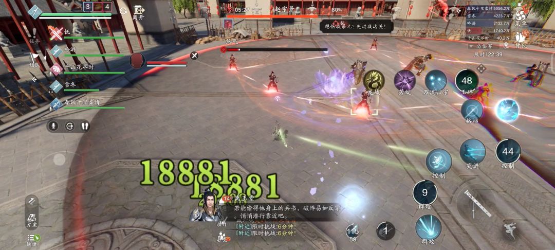 赵允弼命令3名弓箭手向战场中的3少侠进行射击。困难本中,推荐大家在拾取阵眼后连接承伤少侠,才能更好应对【箭贯胡虏】技能。当弓箭手出现后,承伤少侠尽量将赵允弼拉在场地中心位置,而被弓箭手点名的3位少侠则立刻向远离弓箭手的对向移动,使3个技能指示条在中间位置的承伤少侠身上交叉,如此方能安全破解技能。