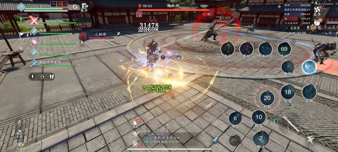 赵允弼在3名副将的援护状态下,处于无敌状态。当3名副将距离过近时会获得攻击力增益,若副将没有同时被击败,则十秒内将恢复状态继续作战。赵允弼的核心技能【三才阵】在困难本中并未进行机制调整,因此,大家的破解方法还是和普通本一样。3个输出各自负责一名副将,保证10秒内将所有副将全部击败,随后各自拾取阵眼。