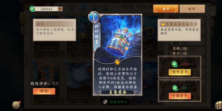 实测下来妙计锦囊强度非常逆天,水木高一回合落地,一回合印卡,截心大海闭月啥都有,有脑公式打法,没几个对手顶得住的。推荐带满妙计锦囊,一块钱绝对超值,也可以带一两张上善若水,用于补全卡组功能。