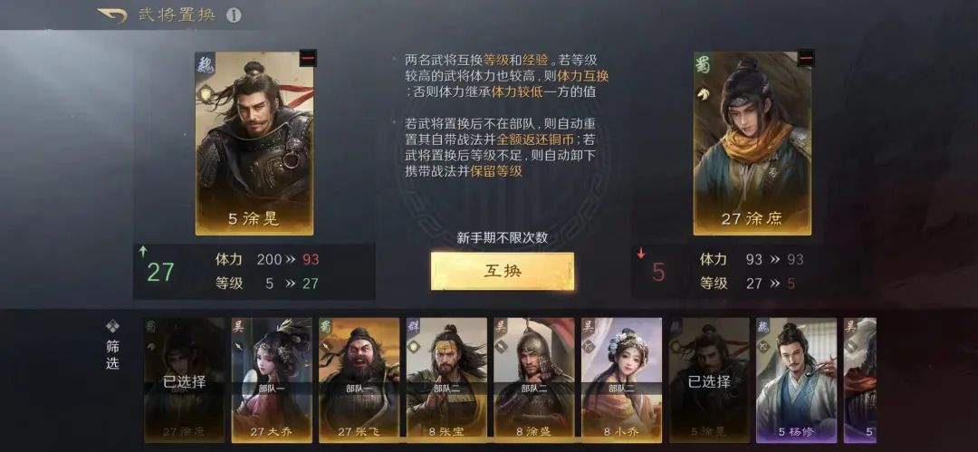 有了卡,配队是关键。新手首推 “孙大盛队”,这套阵容简直是为零氪量身打造。徐盛主坦度,带抵御和洪水效果;大乔全智力加点,负责治疗;孙策全武力加点,当输出核心。战法选斩将夺旗这类兵刃战法,操作简单效果稳,开荒期用它简直 “丝滑”。