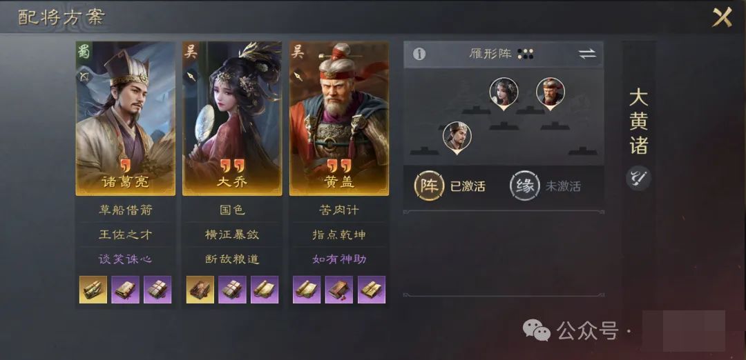 要是运气好抽到更多橙卡,或者想试试稍微进阶的阵容,“大黄诸队” 是个不错的选择。这套以指挥或被动战法为主,不容易被打断,稳定性强。不过黄盖得全先攻加点,确保战法先手发动,对细节有点要求,但练起来之后强度在线。至于桃园队,虽然没展开说,但经典阵容的底子在,后续慢慢研究也不迟。