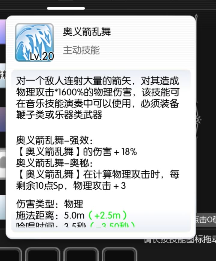 三模就出玫瑰箭矢(端游同名),伤害为(奥义箭乱舞的倍率+剩余sp×(智力+体质)×10%)×120%的吃物理攻击、魔法破防的魔法伤害,扔过去一个范围跟现在狂风暴雨范围一样大小的圈,造成一次伤害,可以连续使用两次,对奥义箭乱舞技能加成同样会对玫瑰箭矢生效,攻击距离18m,单下消耗200sp+sp上限5%,冷却4秒,延迟2秒。