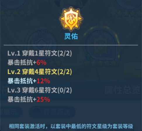 全新符文【灵佑】能够大幅提升暴击抵抗属性,非常适合永恒古树,铁心狼爵,森海旅者等擅长承受伤害、能为队友提供保护能力的英雄佩戴!