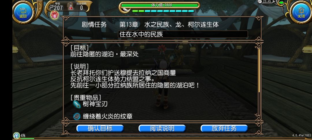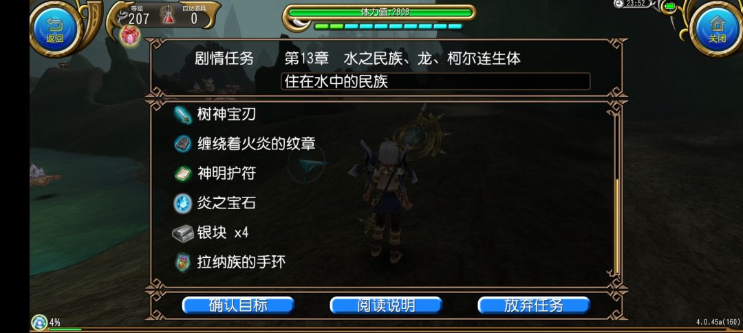 在一段小插曲后,得到了任务道具(信物)拉纳族的手环
