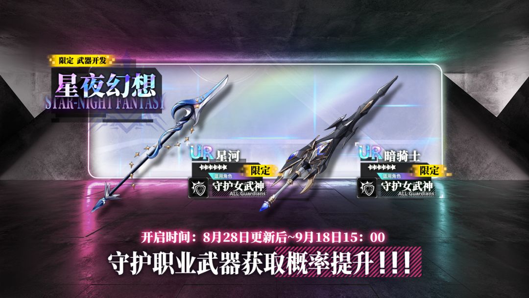 活动说明:活动期间,限定开发补给【星夜幻想】开启。该开发补给中以下武器出现率提升: