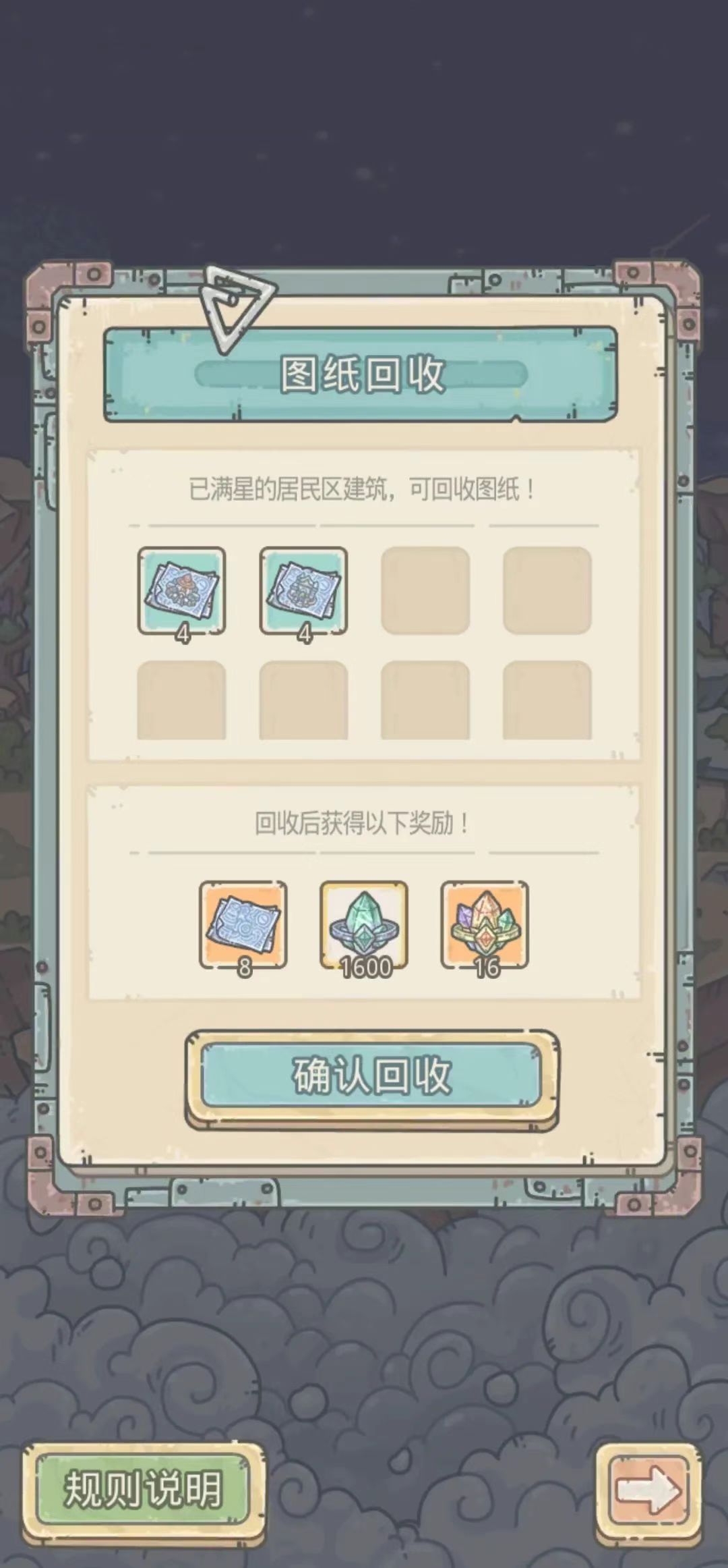 -居民区建筑满星后,可回收对应图纸,获取蓝图碎片、魔晶石、精铸石奖励
