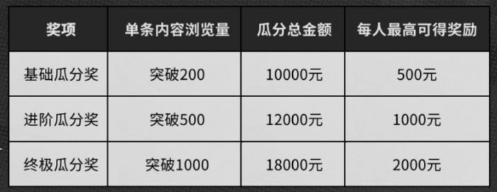 4.参与瓜分的内容点赞率需大于1%(即:点赞/浏览量)