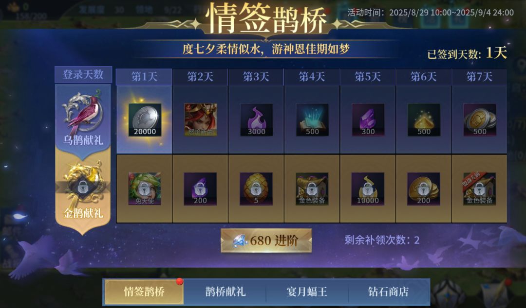 注:鹊桥献礼中自选英雄内容会根据赛季不同而变更。