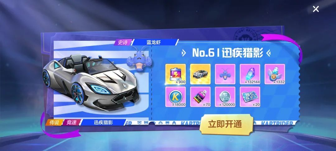 银白夏日,在迅驰的猎影间飞逝,蓝龙虾跳跃,跃出湛蓝的海滨。No.61期通行证迅疾猎影开启,9月1日-9月30日,参与完成每周任务即可解锁全新传说竞速车【迅驰猎影】、史诗飞宠【蓝龙虾】、电池等丰厚奖励,选择季卡更有买二送一超值优惠!