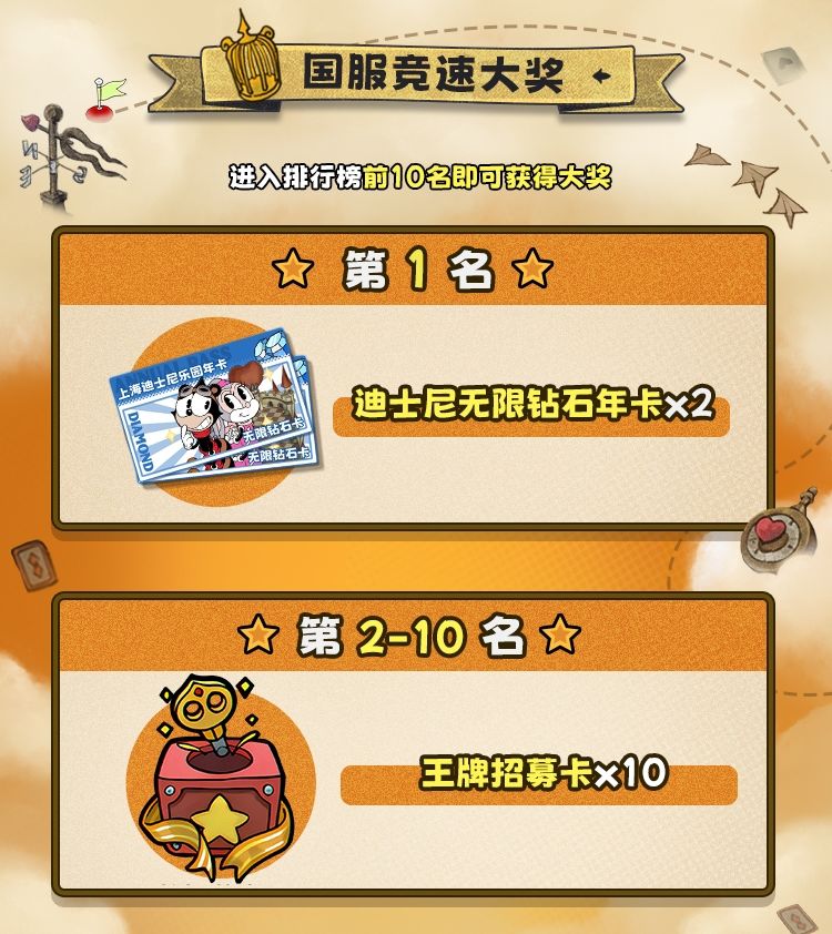 冲刺【双人绝境挑战】竞速排行榜,迪士尼无限钻石年卡X2和飞行员小伙伴一起带回家!排行榜2-10名还可获得王牌招募卡X10哦!
