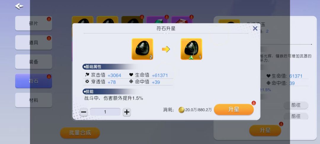 橙1星+橙1星+20万金币=橙2星