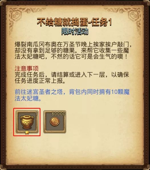 任务1、3所需的魔法太妃糖和南瓜马车都可以在圣者之塔获取!