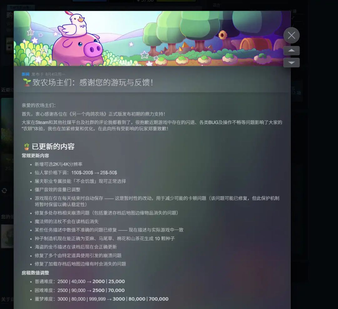 你确实继承了农场,但这个农场并非星露谷,而是一款拥有大城市的快节奏特征,同时又能带来积极反馈的肉鸽种田游戏——《另一个肉鸽农场》。