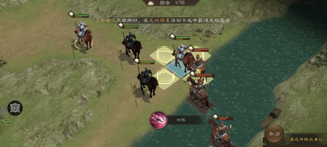 于是都上去放技能给敌军推到水里
