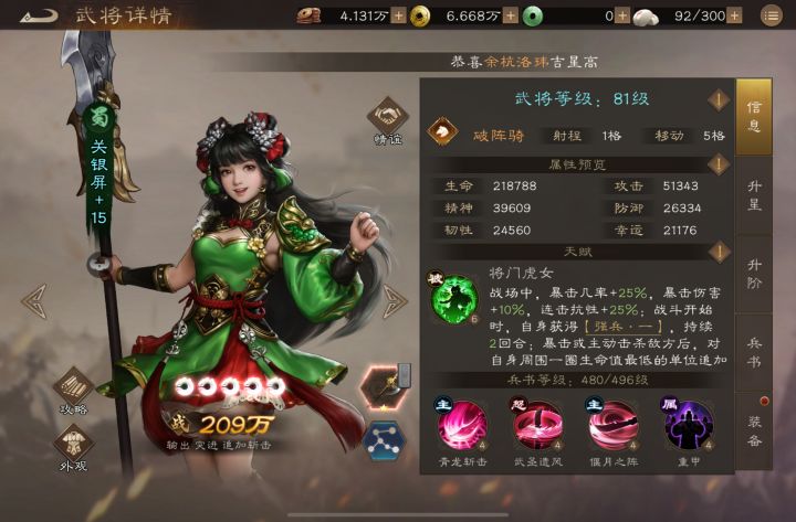 最近打算用刚拉起来得夏侯惇替换关银屏,忽然发现我的夏侯惇跟关银屏正好有一模一样的战力,于是想让他俩pk一下看看谁比较厉害。