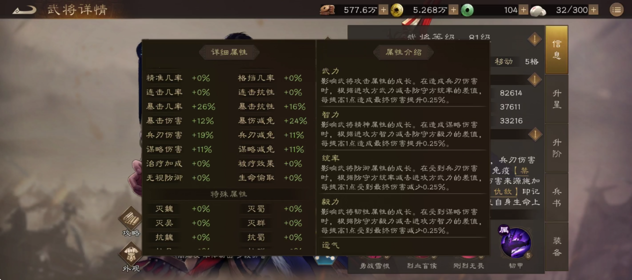 5、武将详细属性