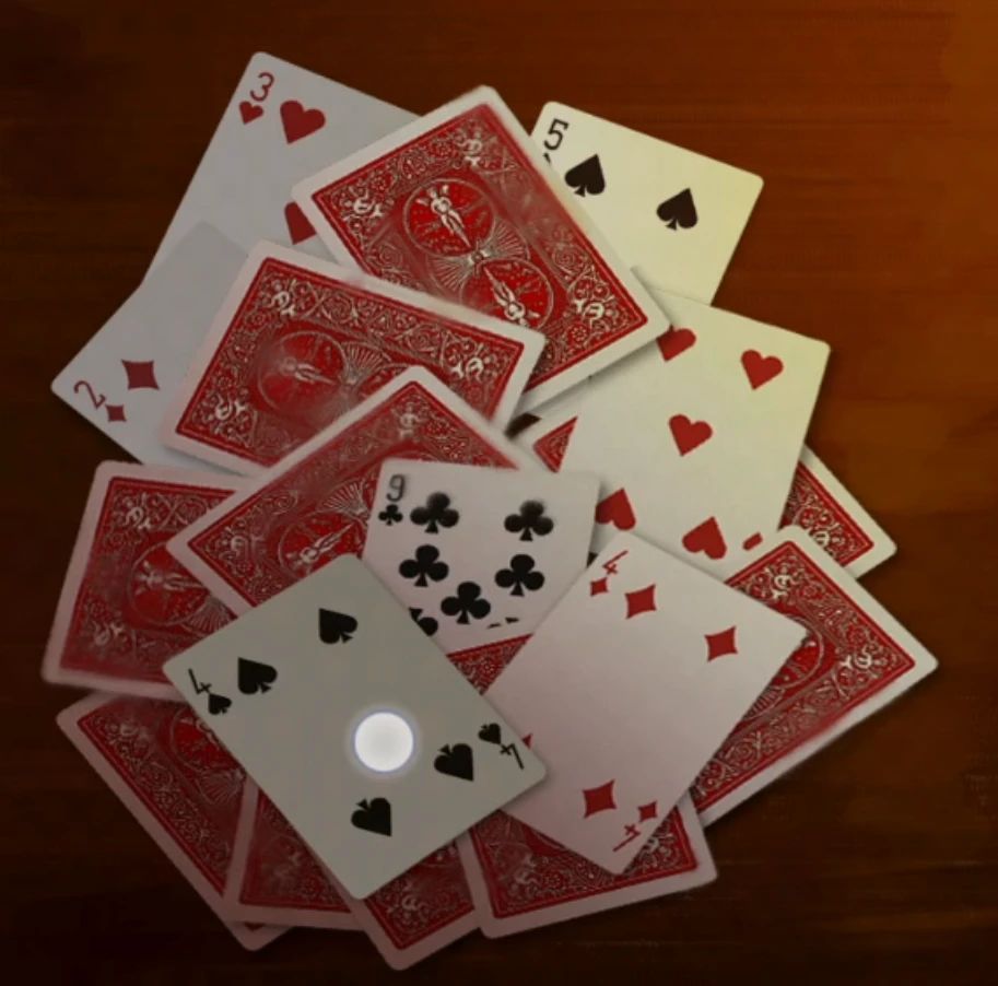 桌子上扑克查看一下应该是线索,右边暖气片拿到【抹布】和【螺丝刀】,回到桌子对抽屉使用螺丝刀打开拿到【清洁剂】,下面就是线索了,其实就是红心1黑桃2梅花3方块4,明显是个顺序线索,再结合一下扑克牌,有的扑克同花色是有两种的,所以我们的线索可能是需要简单的加法,也就是红心3+5=8,黑桃4+9=9,梅花9,方块2+4=6.