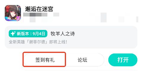 打开TapTap App→我的游戏→找到《邂逅在迷宫》→点击“签到有礼/查看签到”