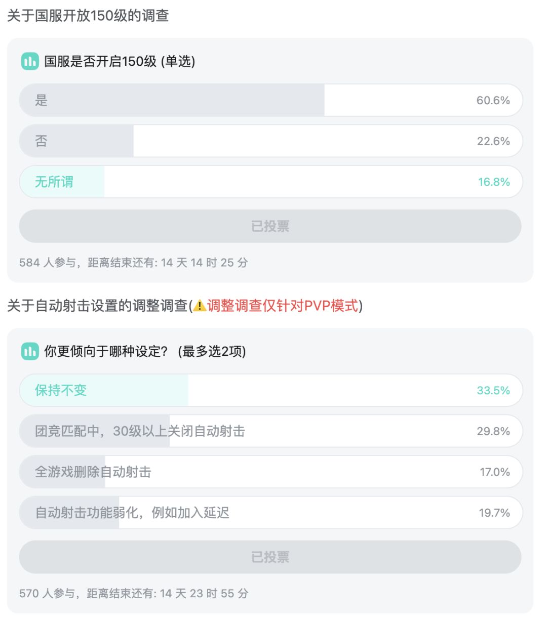 目前关于“150级开放问题”和“自动射击”问题还在内部讨论中。