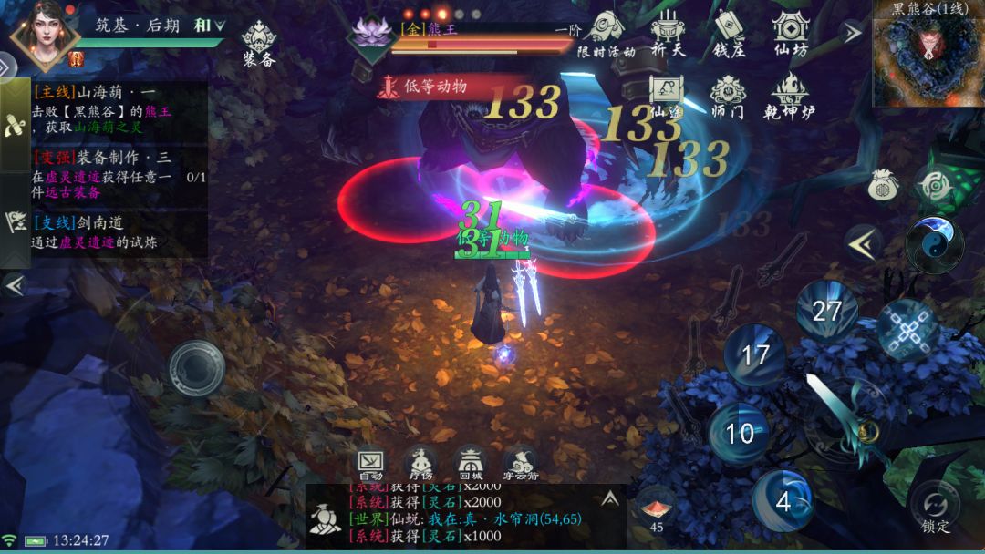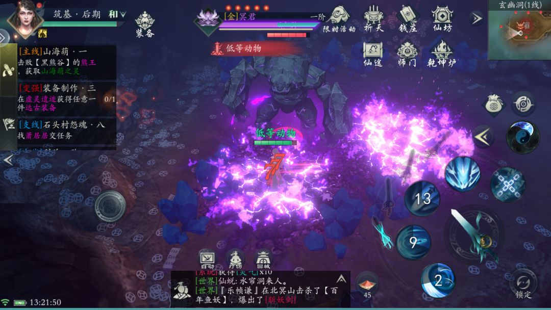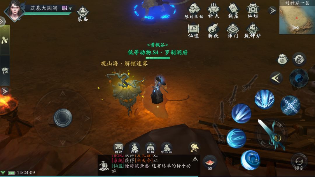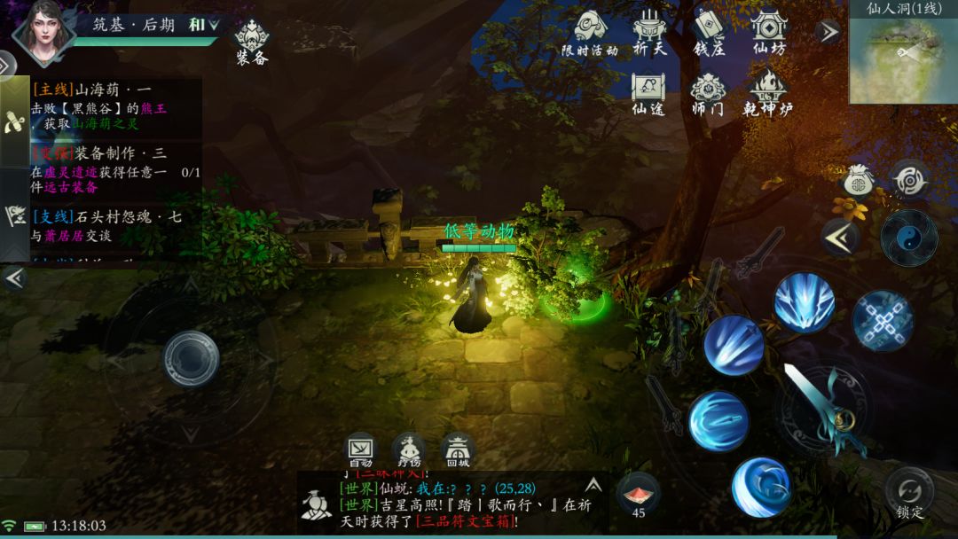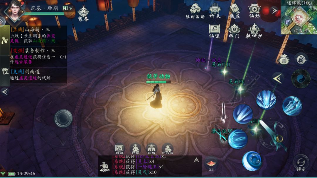 在师门任务和上述妖王首杀经验等等之后,修为突破到筑基后期,主线会解锁山海葫任务,这时跟着主线走,一边走一边获取首杀修为及使用灵气点即可。