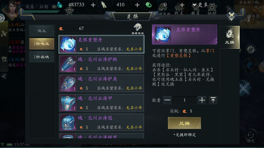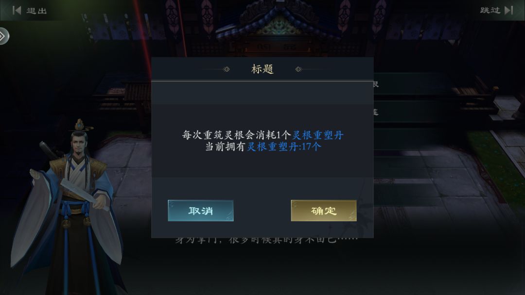 此时可以前往石头村兑换殿换取灵根重塑丹,到青城山掌门npc处进行灵根重塑,这里统一推荐单一水灵根(克制鹤仙五行属性)