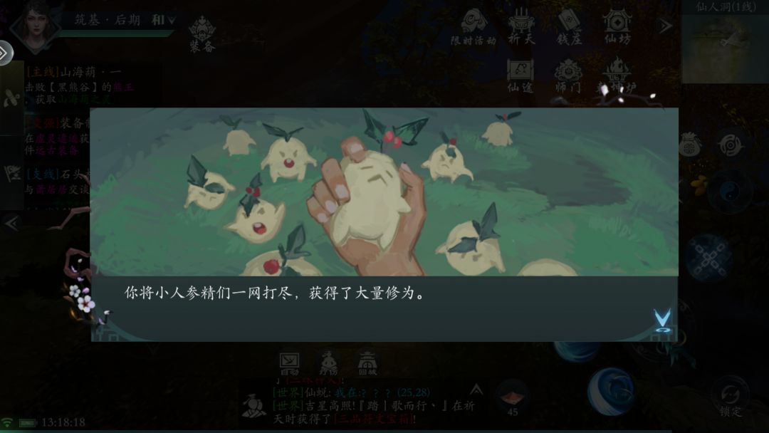 筑基期重要奇遇2:仙人洞人参奇遇(需要练气期在北冥山吃掉人参才能开启解锁此奇遇)