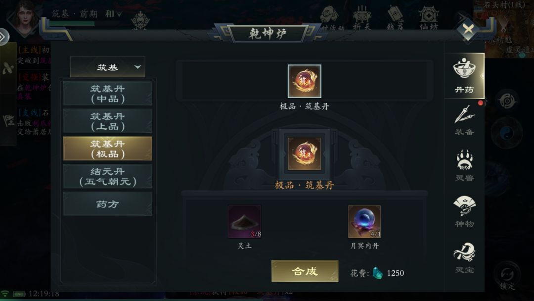 灵装除了玄玉和灵土以外还需要合成丹药极品·筑基丹,妖王·冥嫁刚好掉落丹药材料和元磁神铁