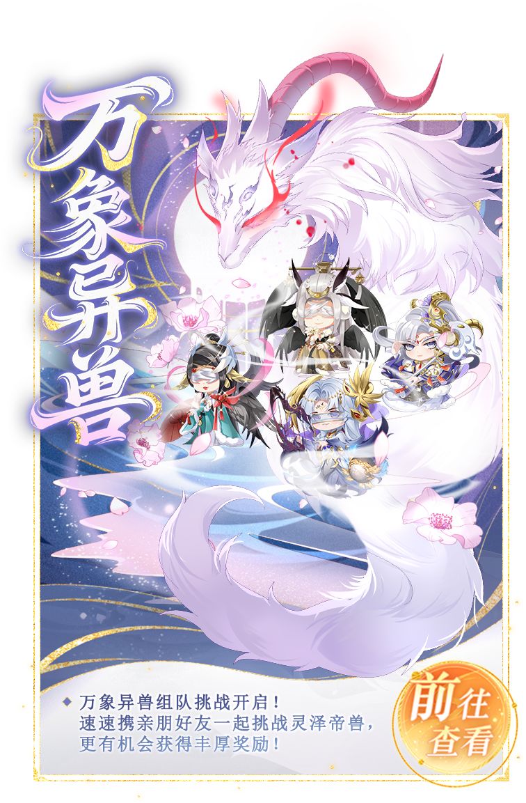 1、新一期「万象异兽」组队挑战限时开启,本期组队挑战时间:8月29日10:00至9月4日23:59