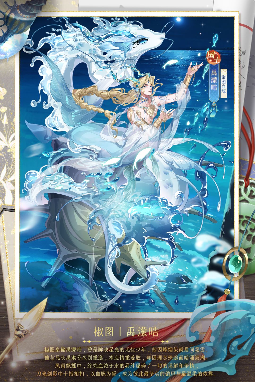 【战斗技能】禹濛晧是一名攻击型侍从,怒气值充满后将触发大招“渊汐卷浪”,对敌方全体目标造成攻击收益伤害并减少一定的自御值,持续2回合