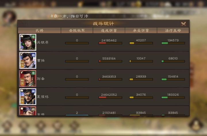 我是手动打完的十回合。两人的伤害可以说是几乎一模一样。其实这个测试夏侯惇略微占优,因为虽然战力相同,夏侯惇有自己的二星专属神兵,而关银屏则是带的别人的神兵。即使这样,两人的伤害也是一模一样。