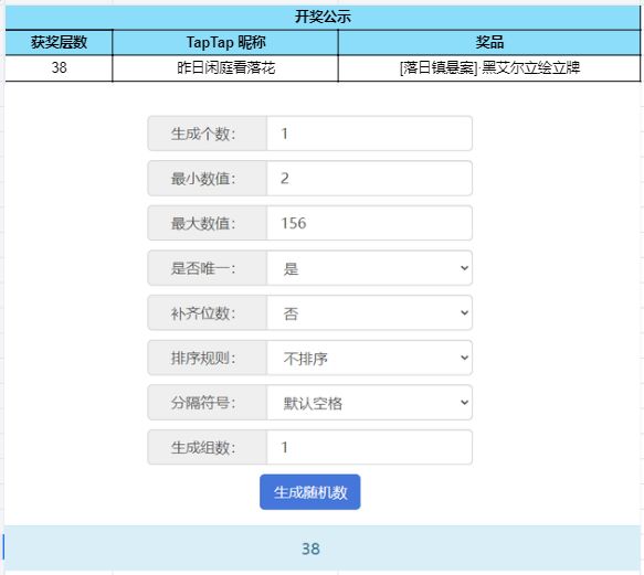 根据开奖结果显示,恭喜以下幸运的玩家们获得奖品: