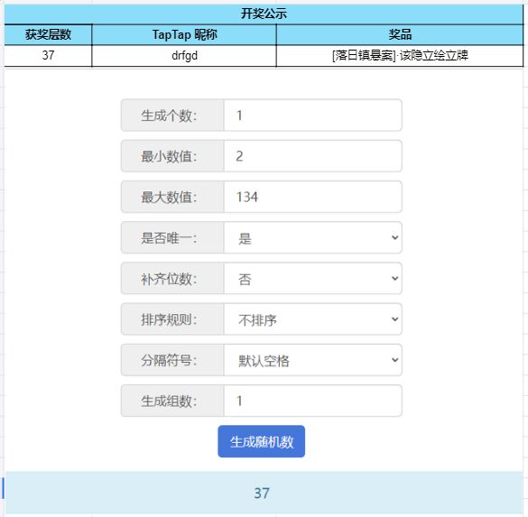 根据开奖结果显示,恭喜以下幸运的玩家们获得奖品: