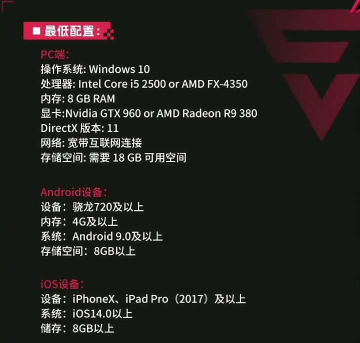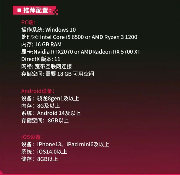 那么,你的手机和电脑能玩这款游戏吗?先来看看配置要求,再考虑要不要玩来体验一下吧!