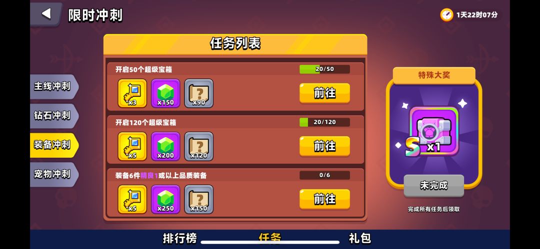 4.最后就是新手刚开始有好几个限时任务,我觉得如果有能力可以冲一冲榜,奖励还不错,钻石榜和主线榜是比较好拿前三名的。