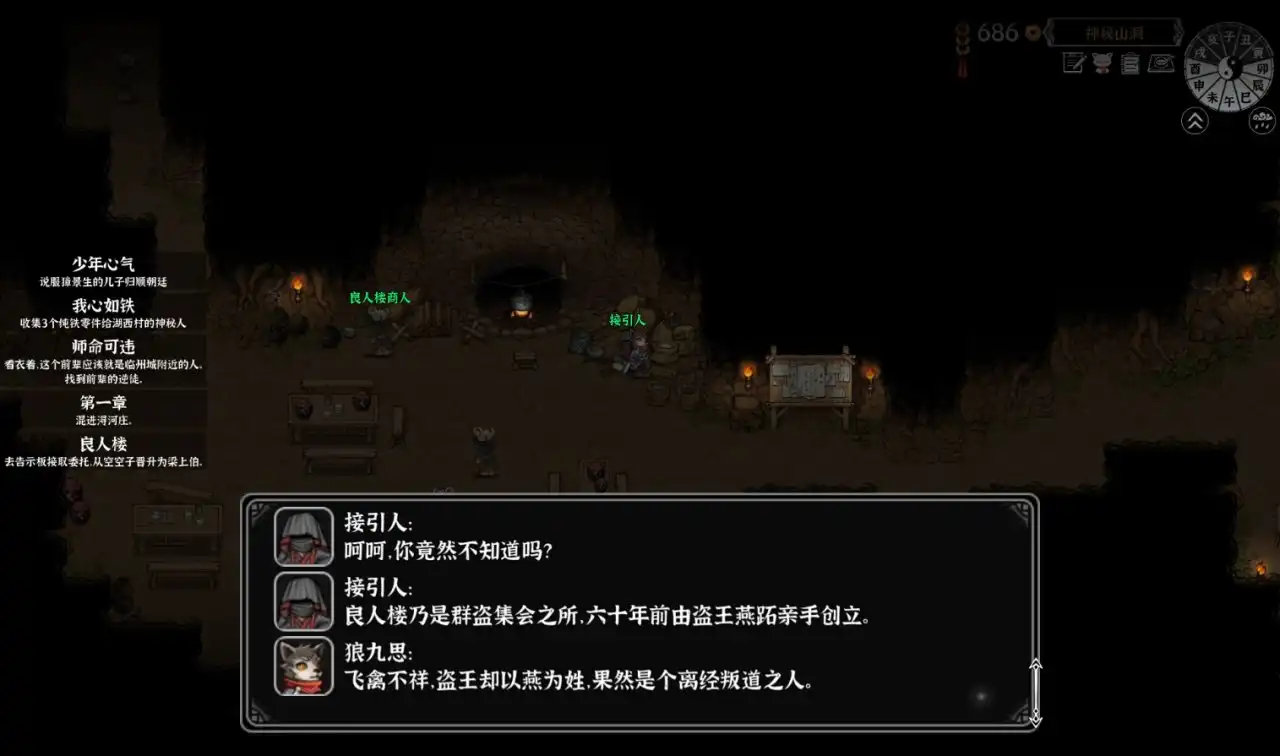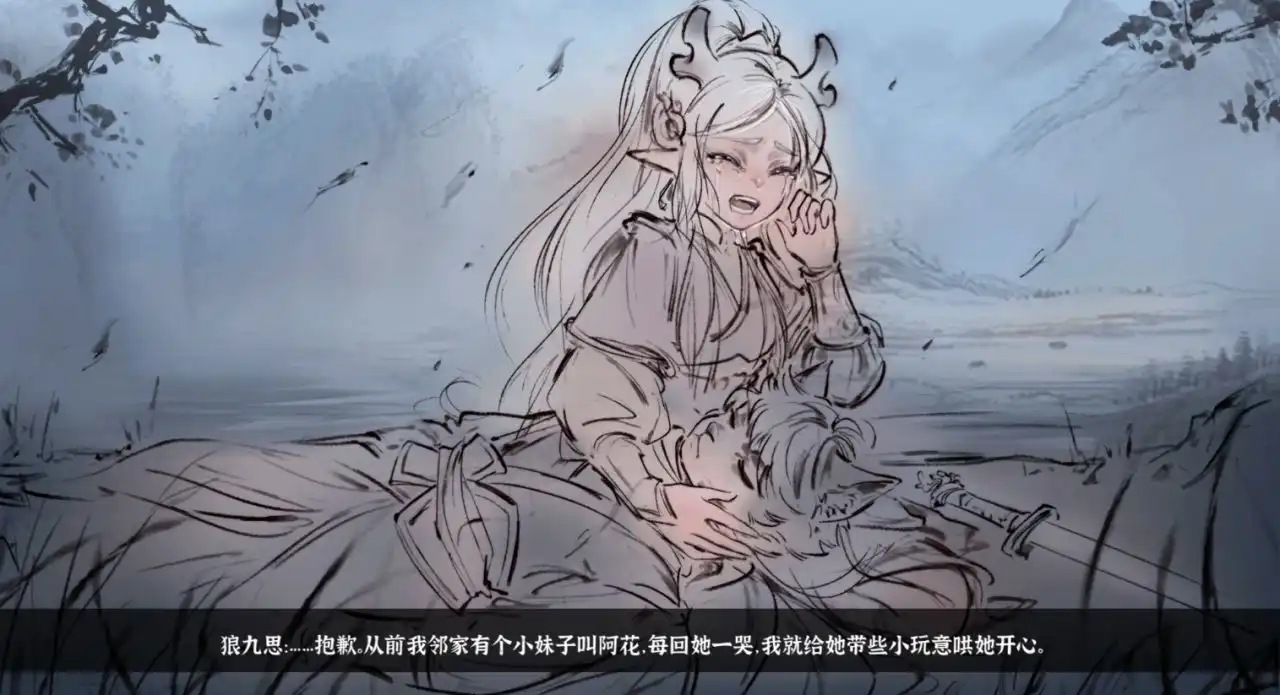 当对花旦心存疑心时,她却向前舍命相博最后倒在血泊之中,偶遇大侠虎二靖相救,这是序章第一次尝试后的剧情,其中还有许多谜团:村子里的大伙真的无法幸免吗?花旦是否真的是盗匪的人?前来营救的虎二靖大侠,对狼九思颈后的鳞片十分在意