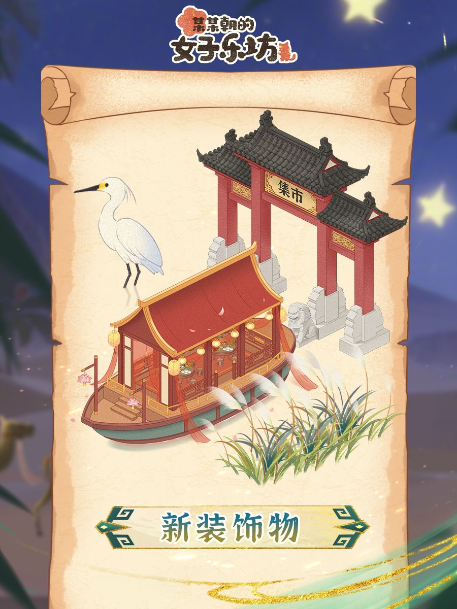 九、新增装饰物,二十四节气系列主题之白露——星河乐舫、芦苇丛、白鹭、牌楼