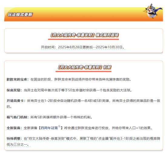 天下无双格斗大会平衡性调整、符文大陆传奇恭喜发财模式限时开启