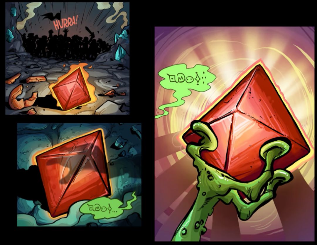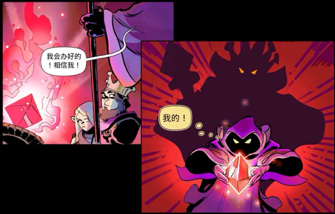 沙漠魔王马拉加尔盗走远古之锤,又捡到镶着那颗红宝石的卫兹南法杖。追击的军势跨过沙海与纳泽鲁之门,穿越失落之地与地底迷宫,终在余烬尖刺深渊对上“世界的暗影”安布拉。安布拉先吞下马拉加尔,后被王军鏖战击灭。尘埃未定,一只带吸盘指尖的绿色之手悄悄把红宝石捡走——谜团反而更深。