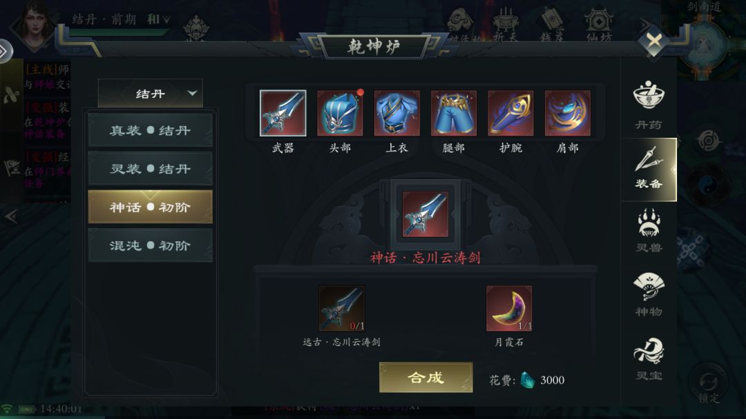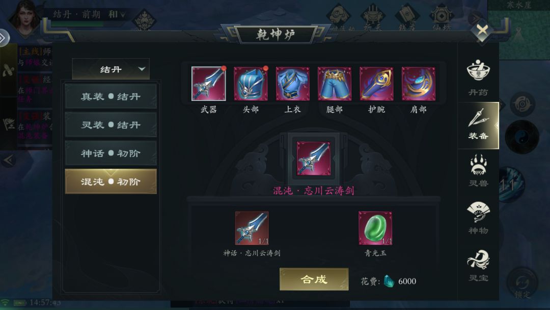 下面就要先去做筑基的混沌武器头盔和结丹的神话上衣腿部了